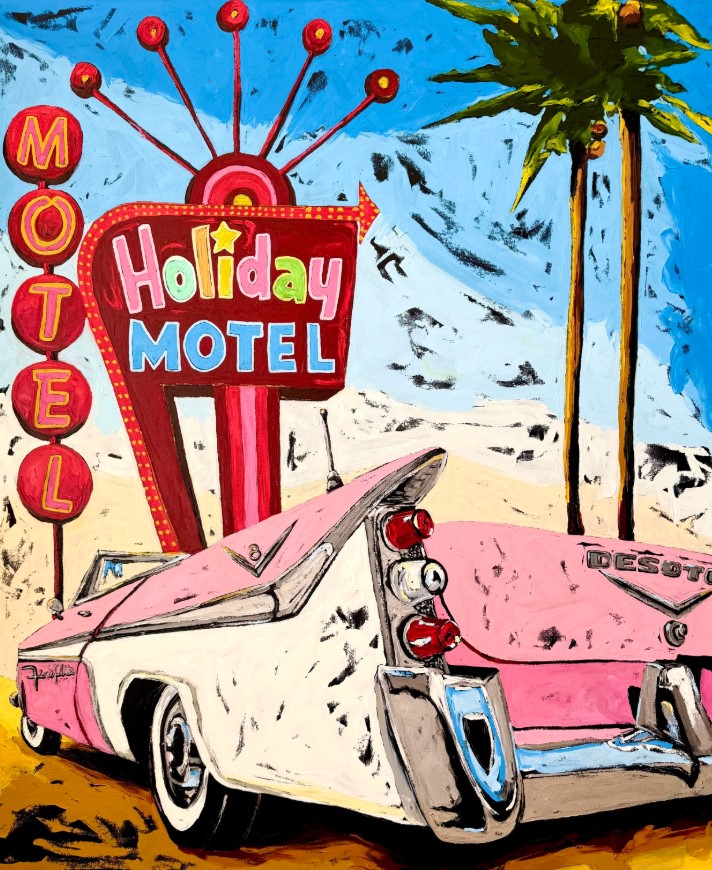 Today, Julia works in her studio in the White Mountains of New Hampshire. Armed with a palette knife and huge tubes of oil paint, she creates artwork that elevates ordinary prosaic subject matter to a new level of iconic imagery, in a direct joie de vivre expression of vivid color and texture…and captures the essence of a generation.